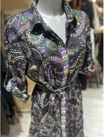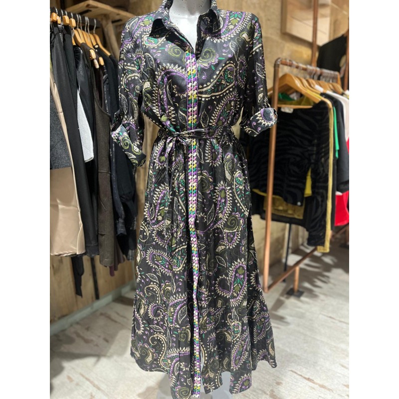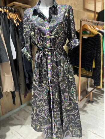 La Robe Olinto est une robe longue qui peur se ceinturer à la taille pour affiner la silhouette elle est complétement boutonnée
