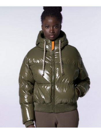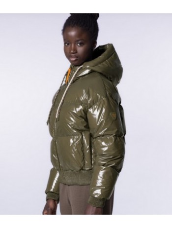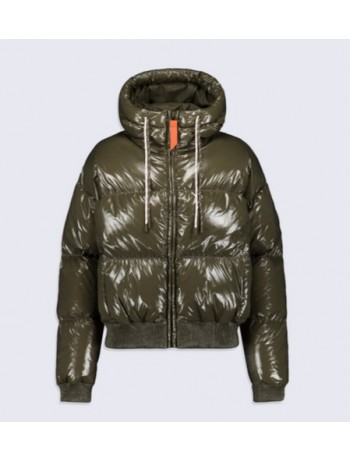 La Doudoune NINE de chez Gertrude est une doudoune courte à capuche confectionnée en matière brillante.