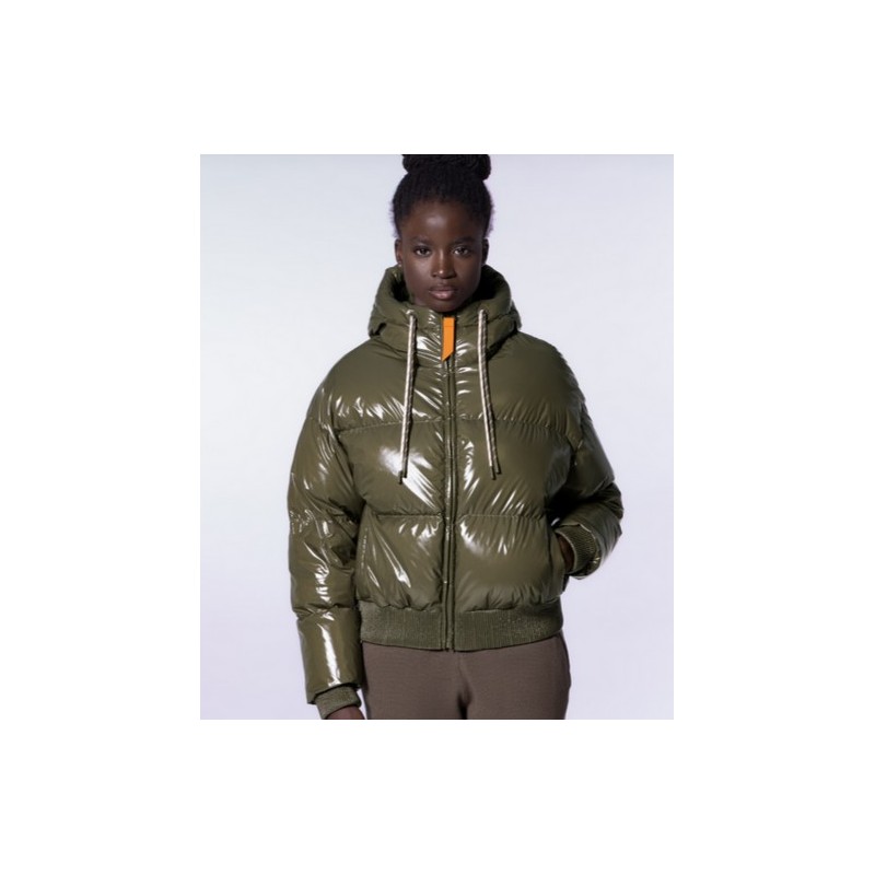 La Doudoune NINE de chez Gertrude est une doudoune courte à capuche confectionnée en matière brillante.