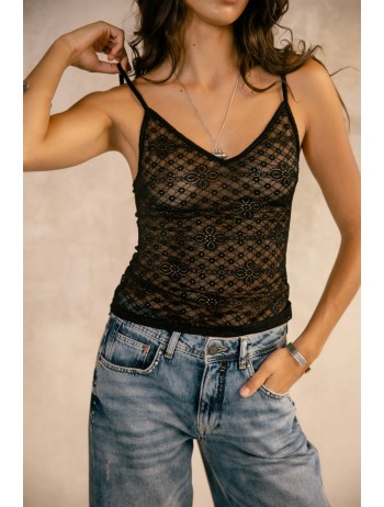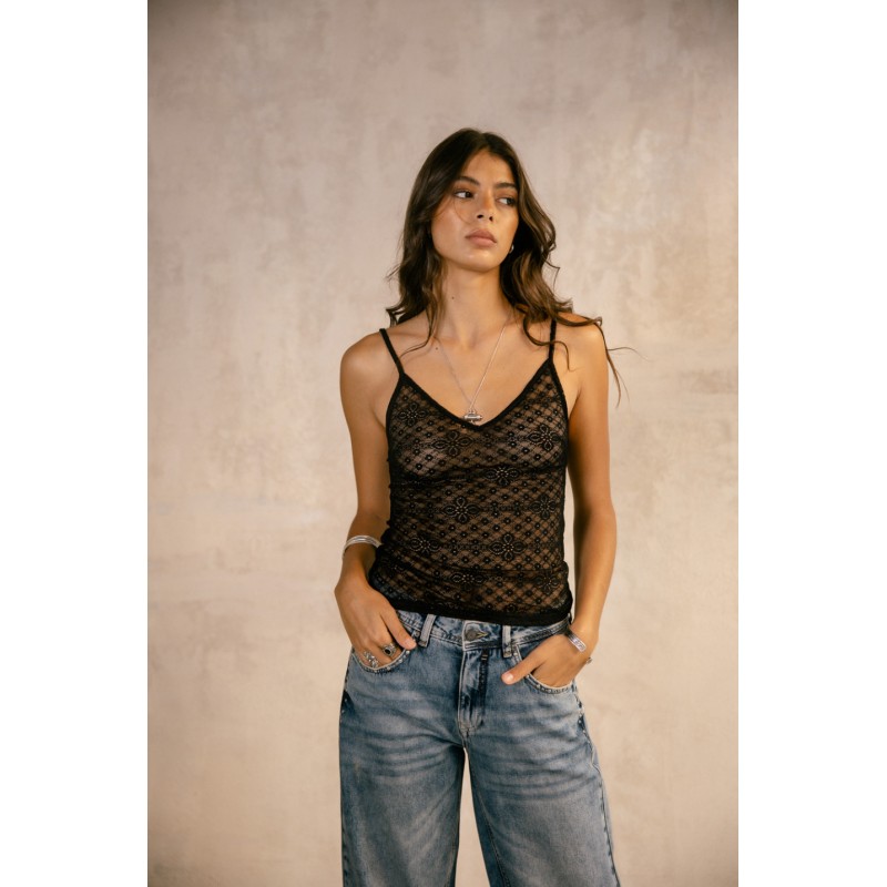 Confectionné dans une matière douce et confortable, ce top dentelle s’adapte à toutes les occasions : porté sous un blazer pour un look sophistiqué ou seul pour une allure plus audacieuse. Sa finition en dentelle délicate apporte une dimension élégante et intemporelle, idéale pour un style casual chic ou habillé.