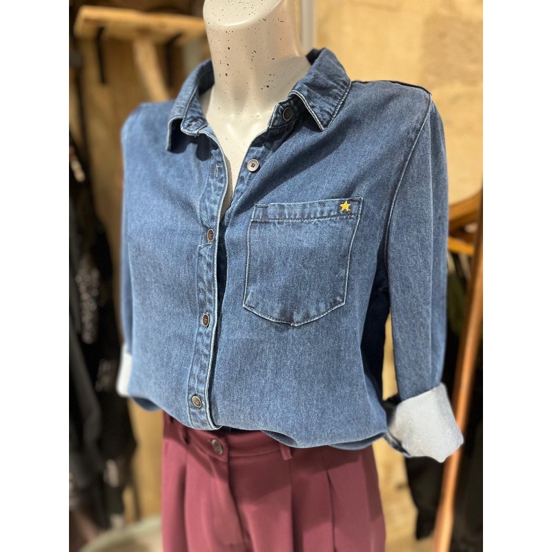 Le chemisier Clem est un chemisier avec un effet denim wash il a une coupe droite